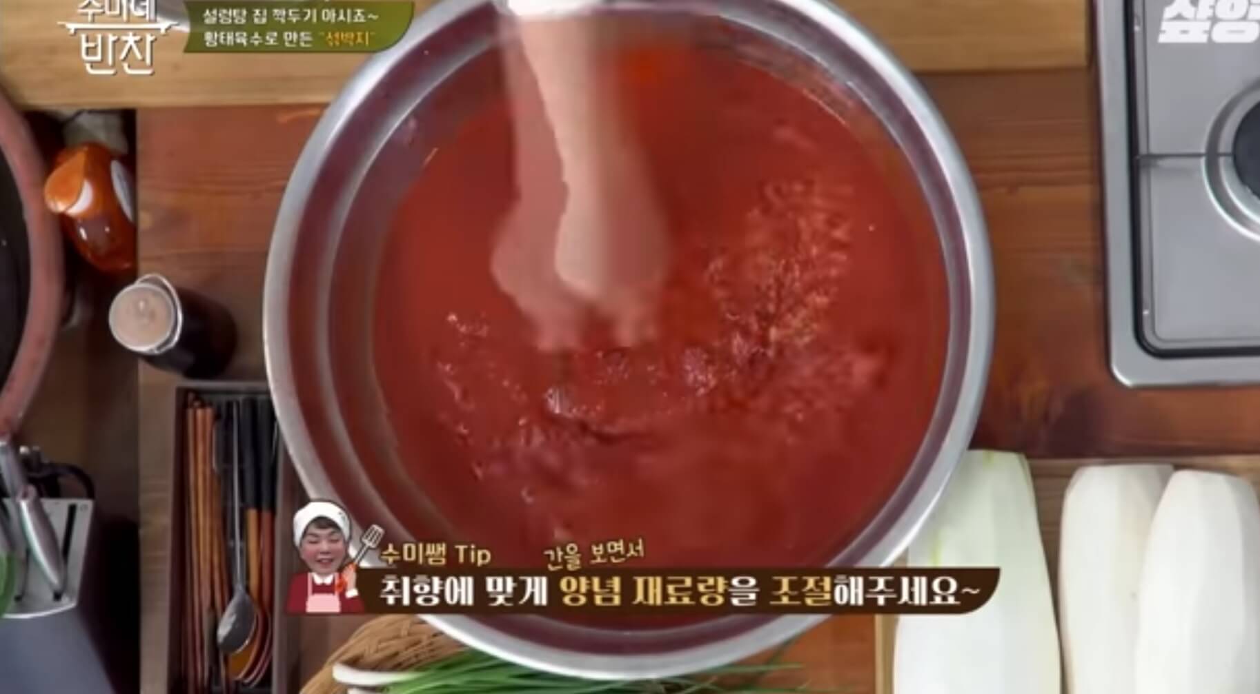 섞박지가 익었을 때 신선도를 지키기 위해 절이지 않는다고 합니다. 절이지 않았기에 양념 만으로 간을 맞추기 어려울 텐데요. 간을 맞출 때 소금을 넣어 간을 해 주세요.